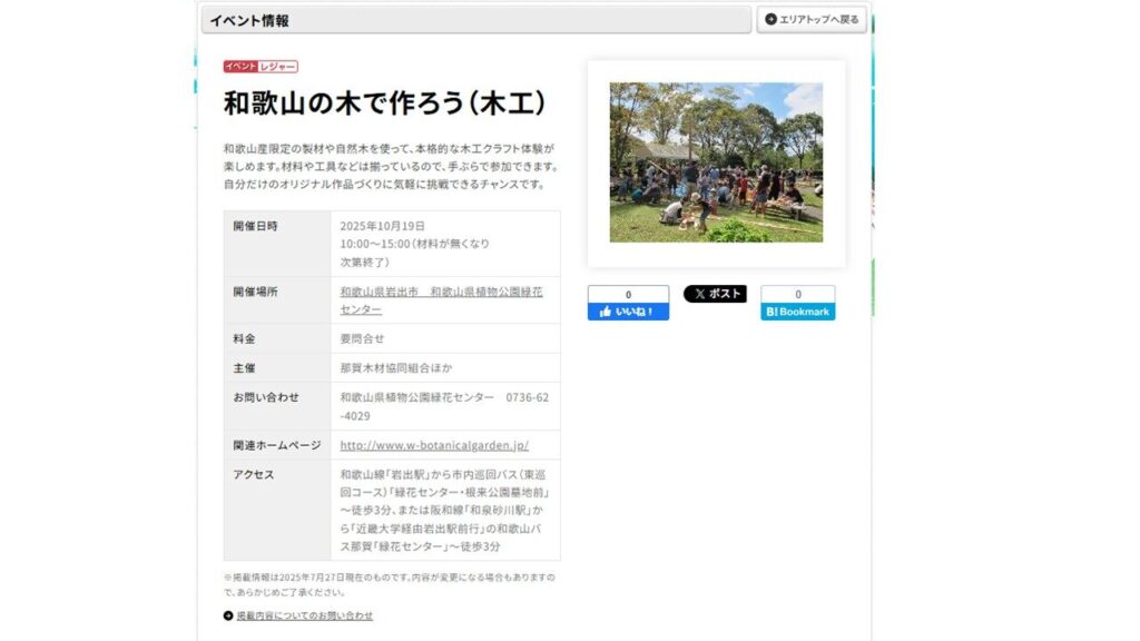 和歌山県植物公園緑化センターにて、木工クラフト体験が行われます(*^^*)