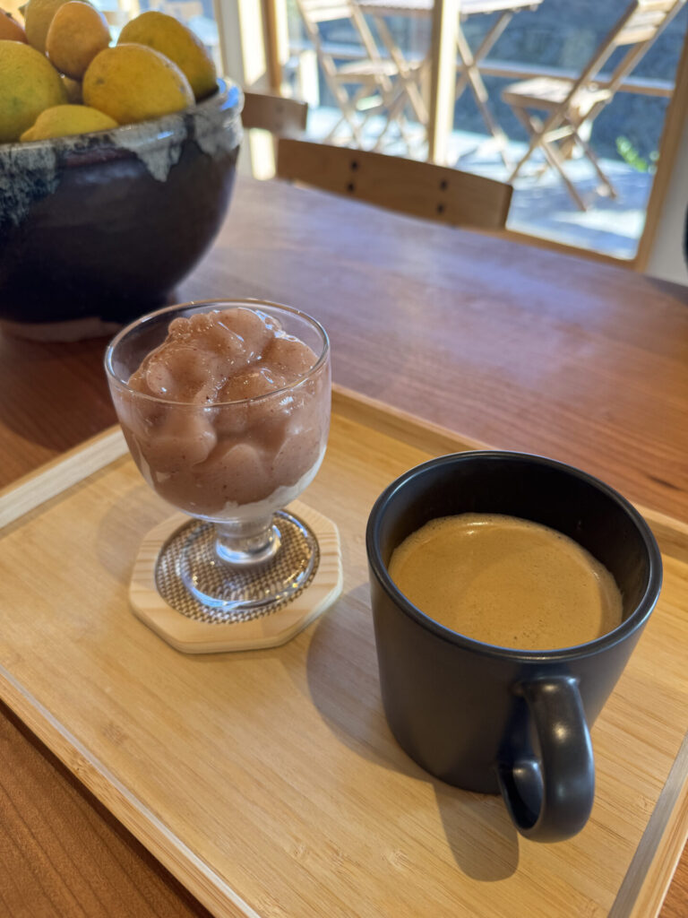 ちょうどお茶の時間でしたので、紀の川果実の食べるスムージーと、自家製いちじくジャムのデニッシュトーストを注文しました(*^^*)