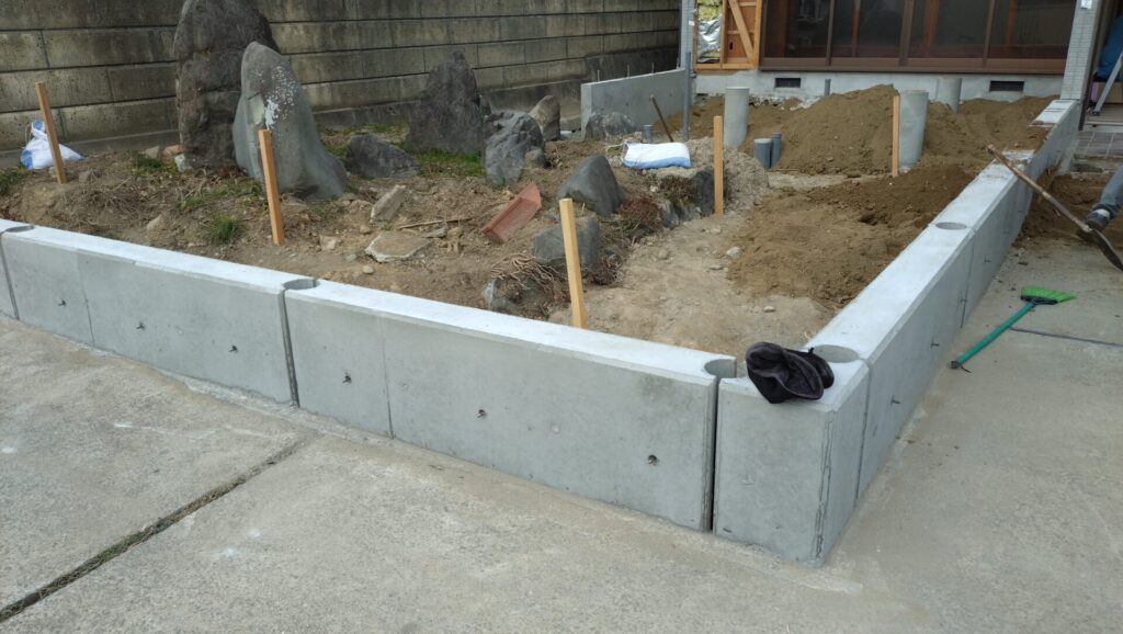 日本庭園を囲うコンクリート壁の仮枠が外されました。