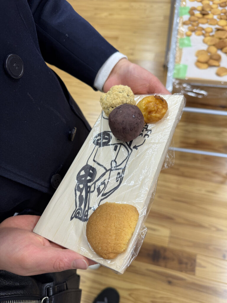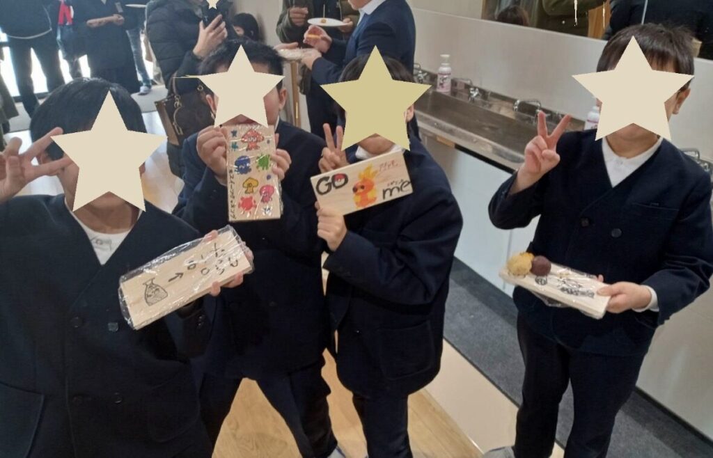 生徒さんは弊社が提供させていただいた紀州材トレイを使用し、お米で作ったクッキー、おはぎ、ドーナツなど様々なスイーツを親御様と共に楽しんでおられました。
