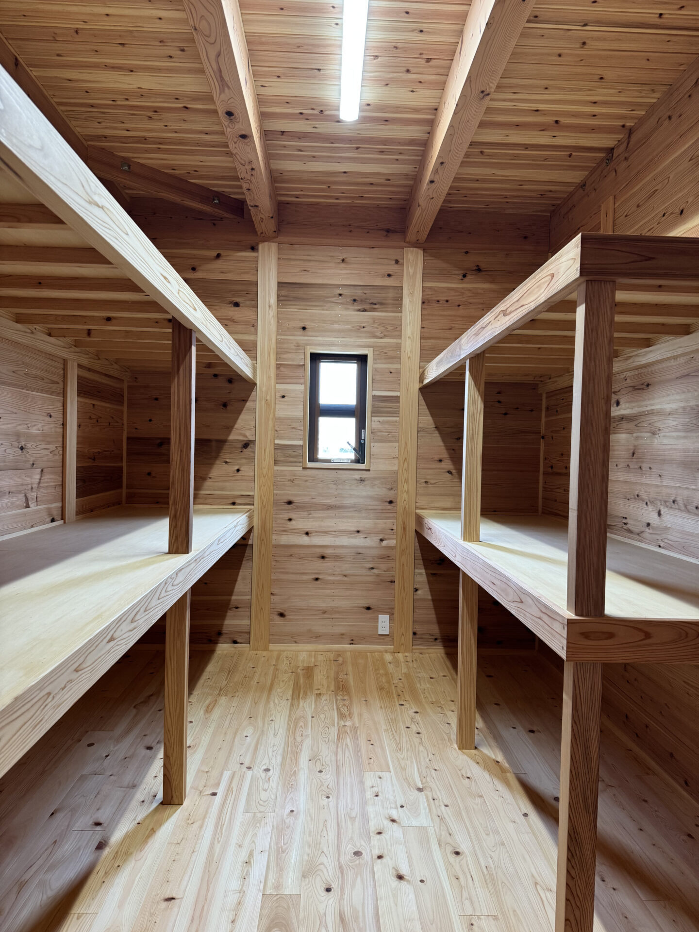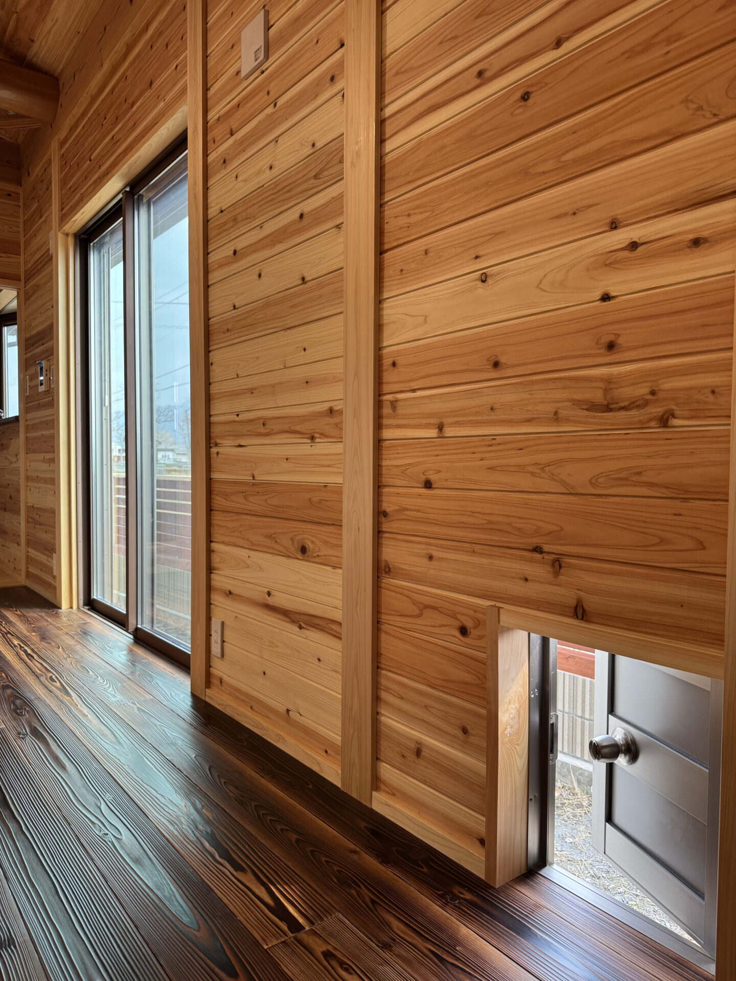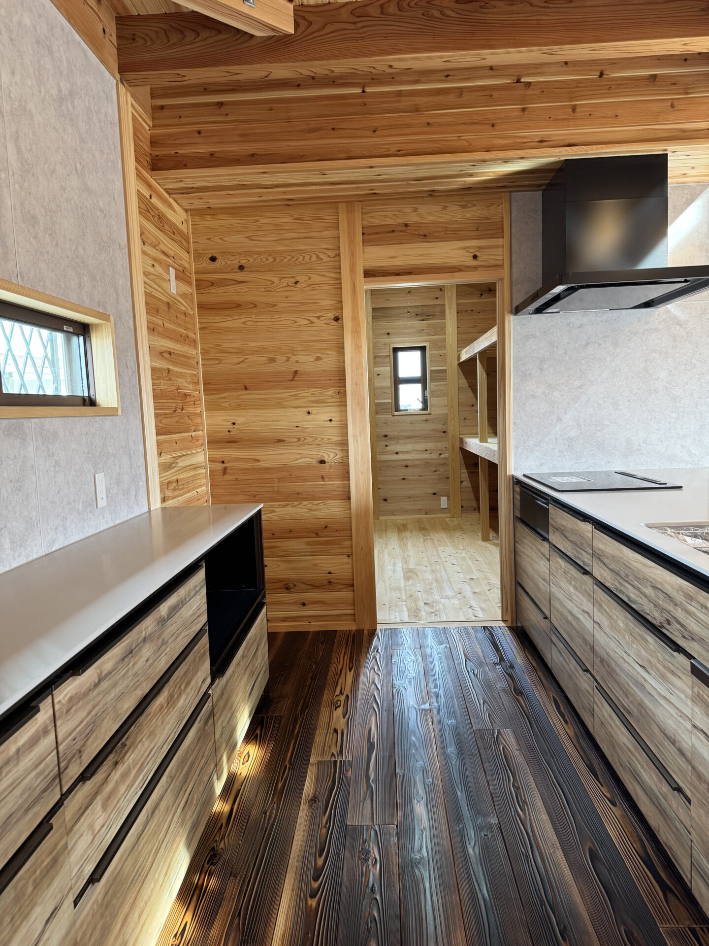このお家は、壁の内側に真壁工法を採用し、自然木の無垢材をふんだんに使用することで、居心地の良さと美しさを両立させています。