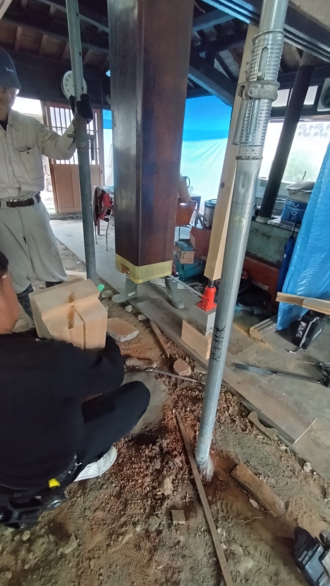 交換する柱の工事も完了し、基礎工事は着々と進められております。