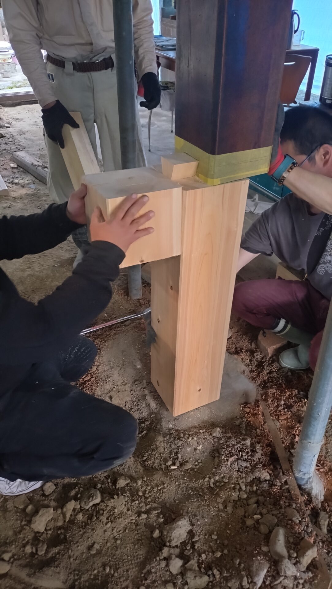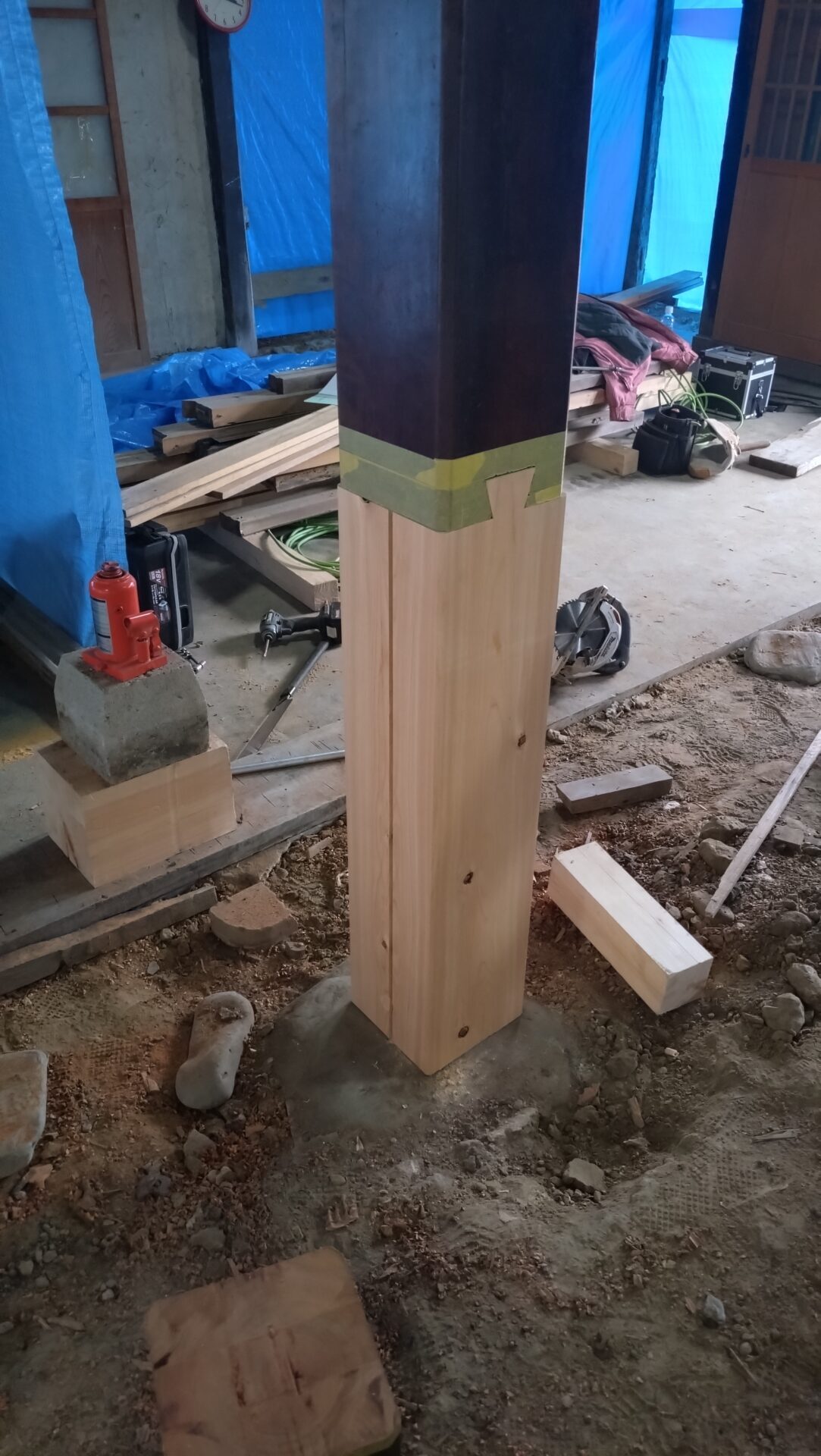 足元が傷んだ柱の根継ぎが行われました。