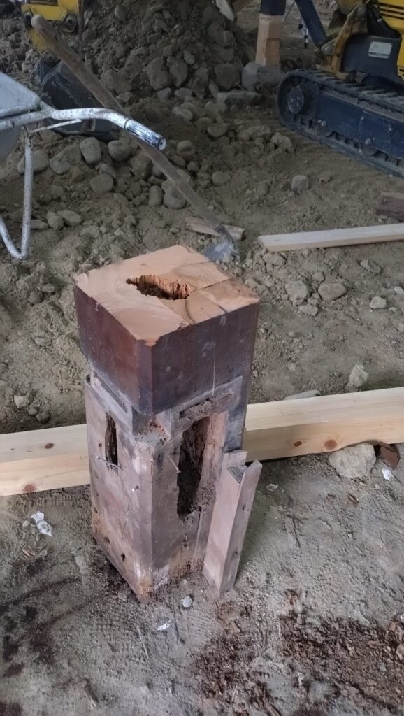 土台を仕込むためのホゾ穴も四方から大きく切りかかれていたので、
