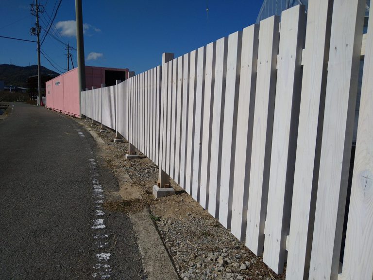 紀州材のみでフェンス工事をさせて頂きました。全長およそ80Mのロングフェンスです。