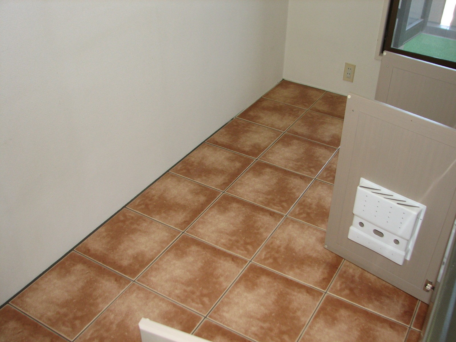 既存のクッションフロアを剥がし、できるだけ床の高さが変わらないようにタイルを貼らせて頂きました。