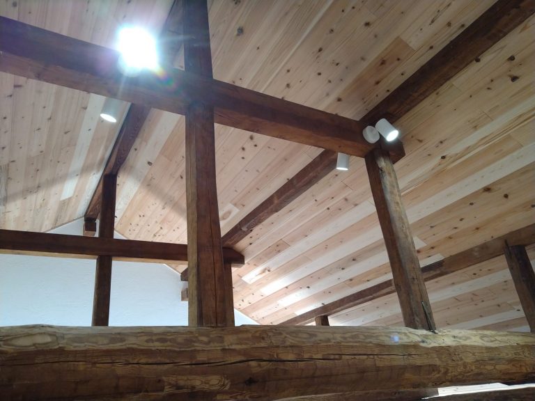 「既存住宅を残し、断熱性、耐震性を高めたい」というお客様のご要望に応え、屋根・壁・床共に全て撤去し骨組みだけの状態にしてから基礎工事を行いました。大掛かりな工事の為工事期間は長くかかりましたが、気密性・断熱性とも向上しお客様にも喜んで頂いております。 また紀の川市の木造住宅耐震改修工事の補助金を受けて頂き、耐震性能も格段に良くなっています。 うんていや、ボルダリングなど遊び心と、スイス漆喰や国産無垢材を使用した身体と心にやさしい仕上がりとなりました。